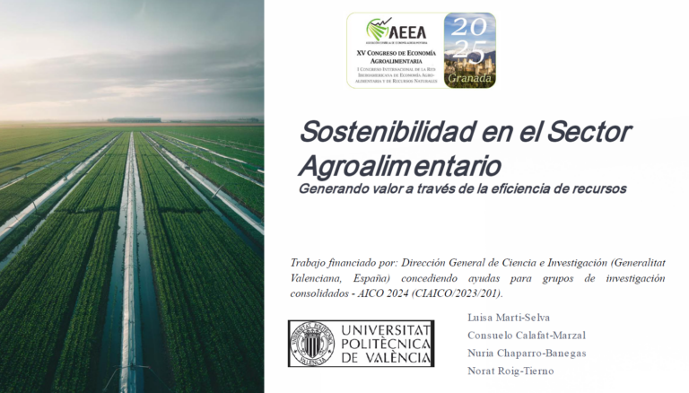 Congreso de Economia Agroalimentaria Esta ponencia analizó la sostenibilidad en el sector agroalimentario europeo, centrándose en la eficiencia en el uso de los recursos como vía para generar valor económico y ambiental. A partir de datos del Flash Eurobarómetro 549, se estudió una muestra de empresas agroalimentarias de diez países de la UE que concentran más del 82 % del tejido empresarial del sector. Mediante la aplicación del método de Entropía y la técnica TOPSIS, se identificaron diferencias significativas en la adopción de acciones de eficiencia de recursos, destacando una mayor dispersión en el uso de energías renovables y en el eco-diseño de productos. Los resultados muestran que España e Italia lideran el ranking de países con mejor desempeño, mientras que Polonia y Rumanía presentan mayores retos. En conjunto, la ponencia aporta evidencia relevante para el diseño de políticas públicas orientadas a reducir disparidades regionales y fomentar una transición más equilibrada hacia la economía circular en el sector agroalimentario europeo.